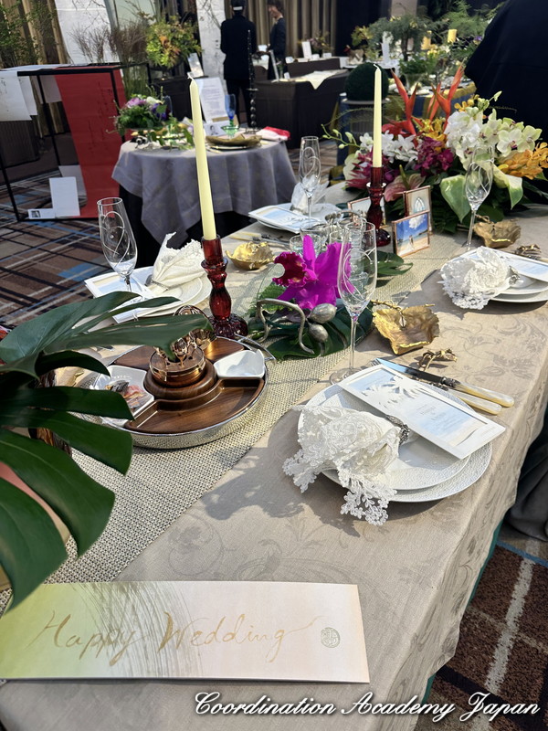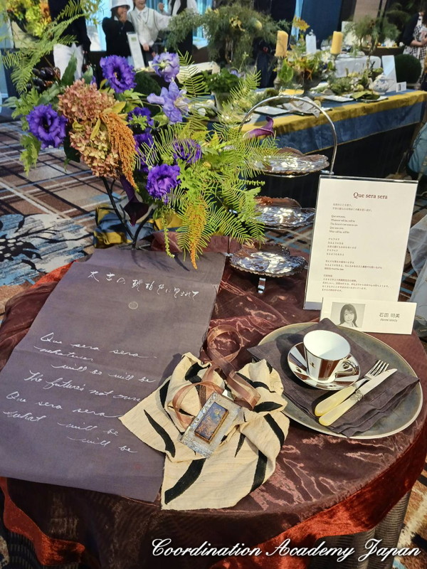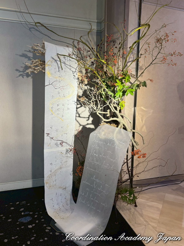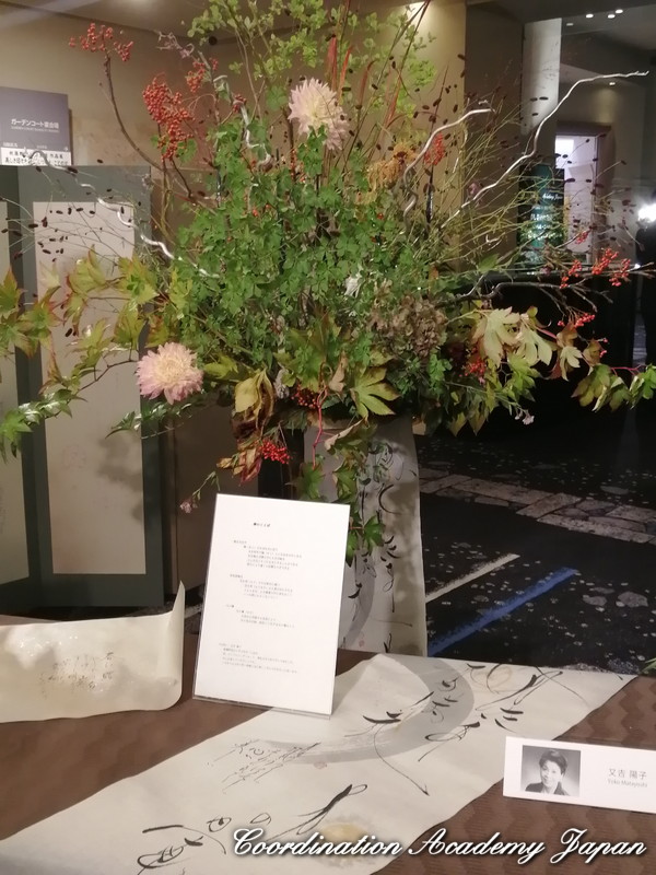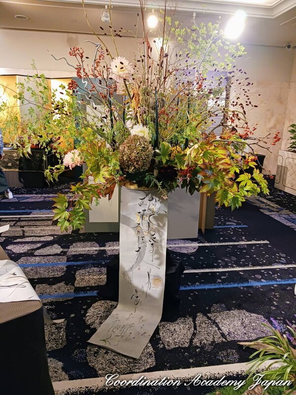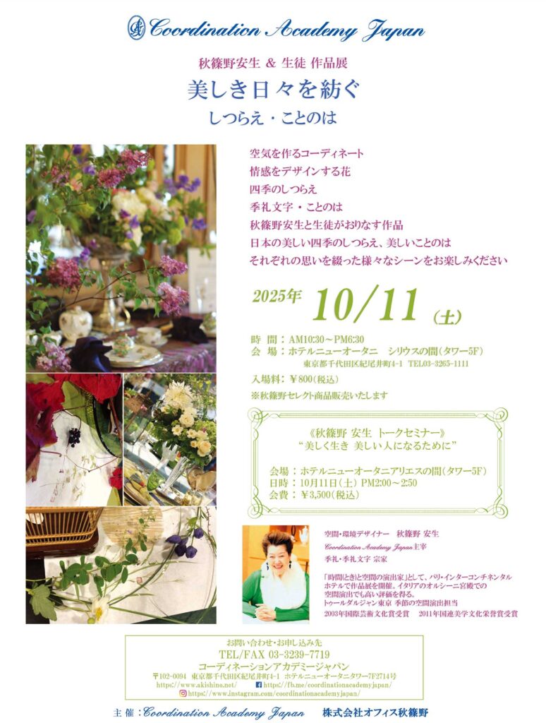 10月11日、ホテルニューオータニ「シリウスの間」にて、コーディネーションアカデミージャパン 秋篠野安生&生徒作品展『美しき日々を紡ぐ しつらえ・ことのは』を開催いたしました。